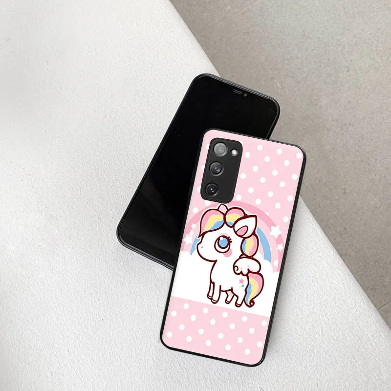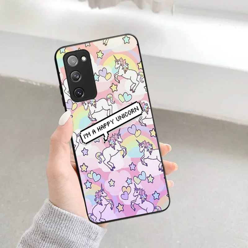 Чехол для телефона Samsung Galaxy S21 Ultra S20 FE S10 Plus 5G S9 Note 20 10 Lite 9 8 Rainbow Kawaii Unicorn, мягкий черный Чехол