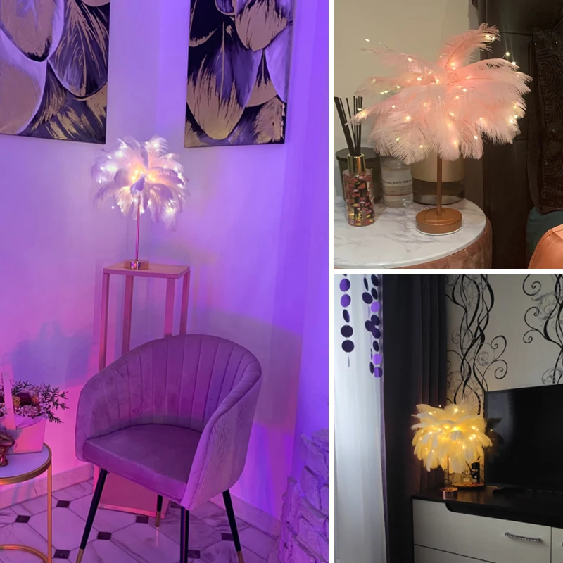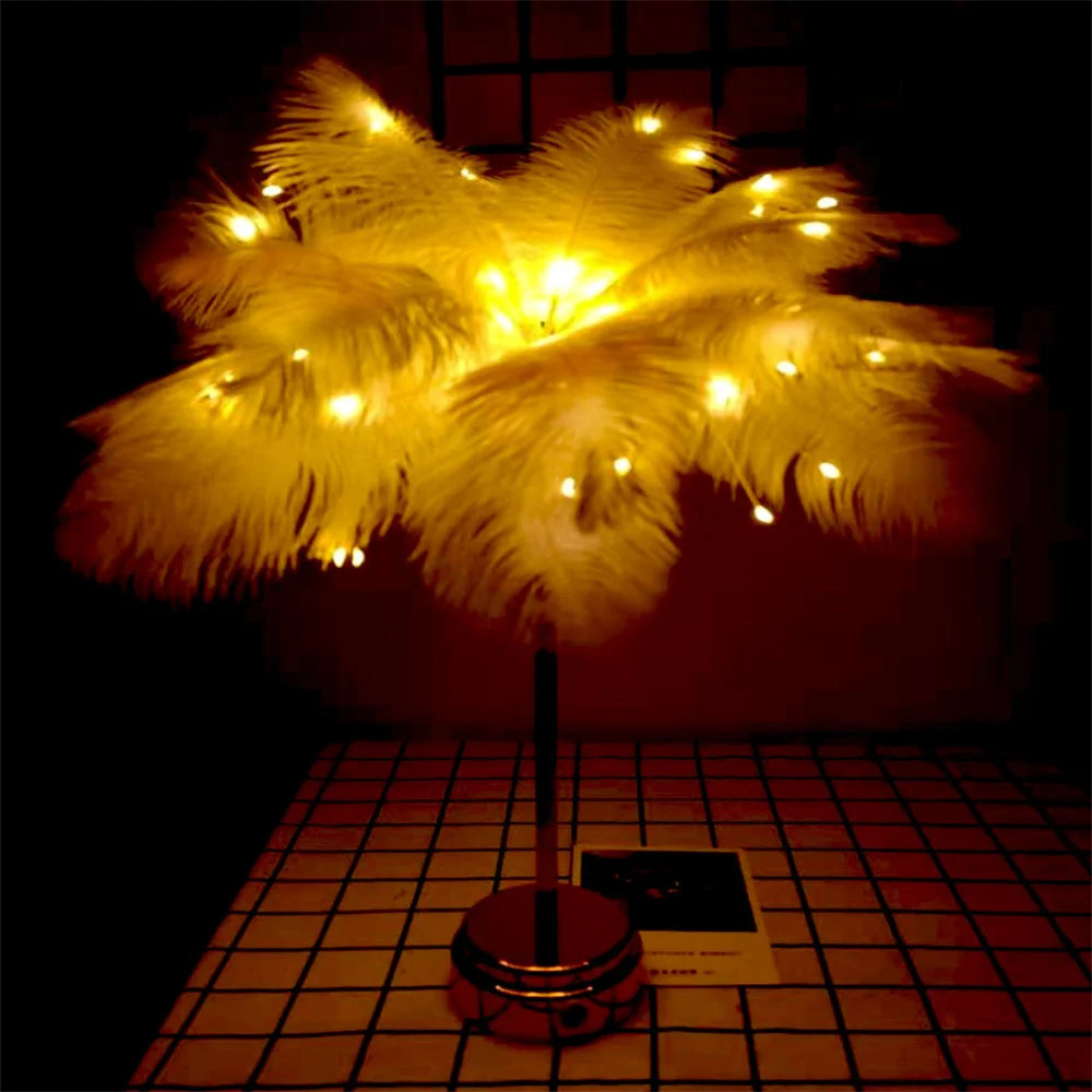 Настольная лампа с перьями, необычный ночник с питанием от USBбатареек AA, креативный Сказочный светильник сделай сам для украшения дома, свадьбы, спальни, теплсветильник