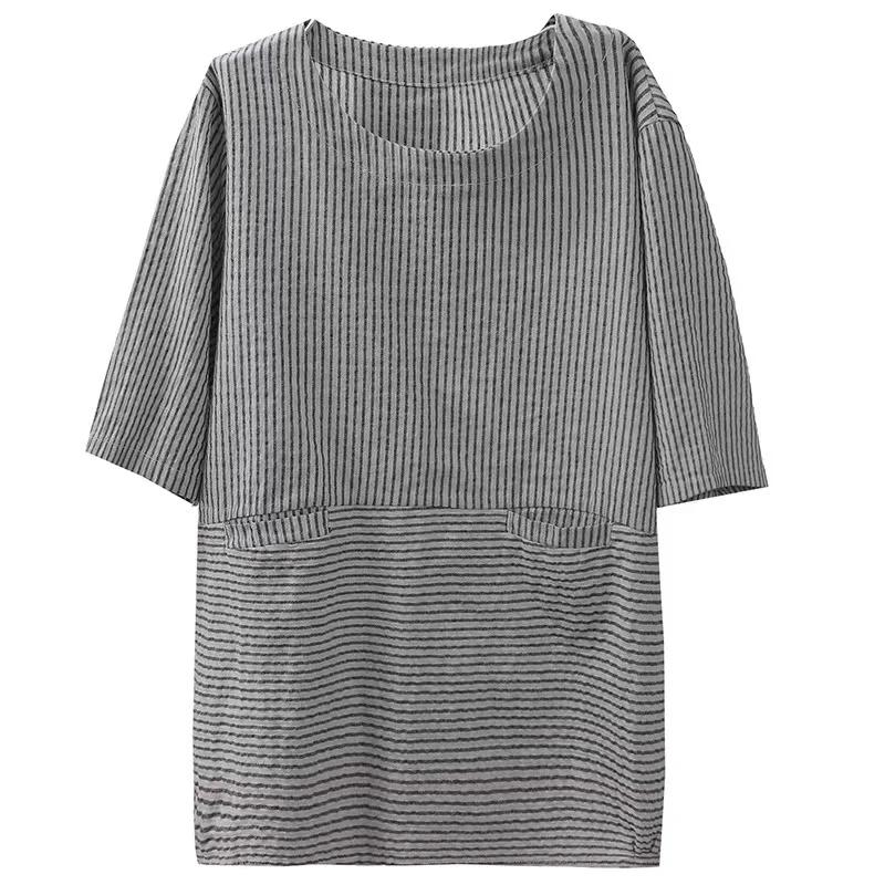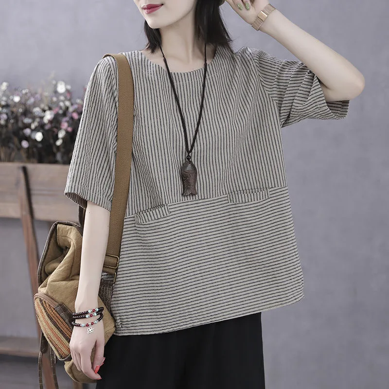 Женские футболки, летняя Хлопковая полосатая футболка, свободная по...