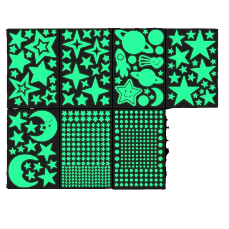 Светящиеся 3D звезды, точки, луна, настенные Стикеры, наклейка для детской комнаты, спальни, украшение для дома, планета, искусственная наклейка