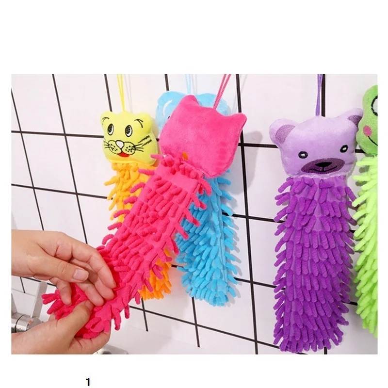 Мягкие кухонные подвесные полотенца из синели, полотенца для чистки лица, Детские Мультяшные животные, ванная комната, мочалка, носовой платок
