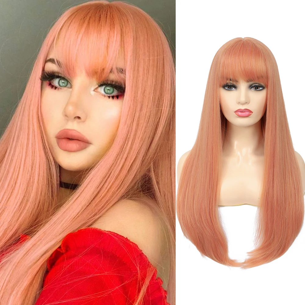 Черные змеиные парики с челкой блонд 28 дюймов прямые длинные волосы парик блонд розовый цветной парик с фронтальной срезкой челки для женщин