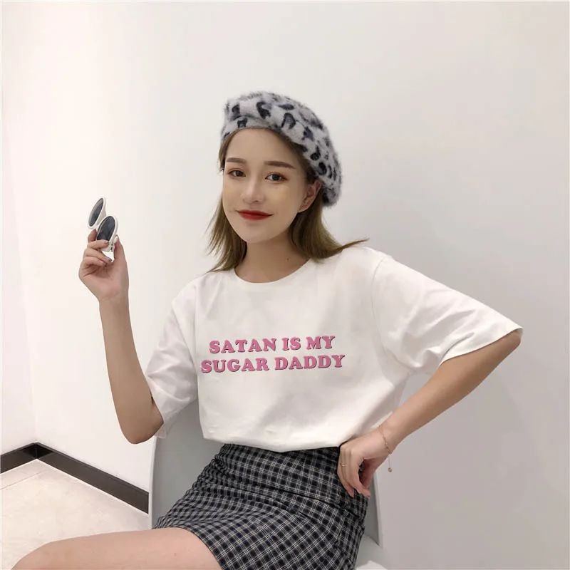 Футболка в стиле Харадзюку для девочек, Повседневная рубашка с принтом сатана это мой сахар, одежда в эстетике, Модные топы для малышей, на лето