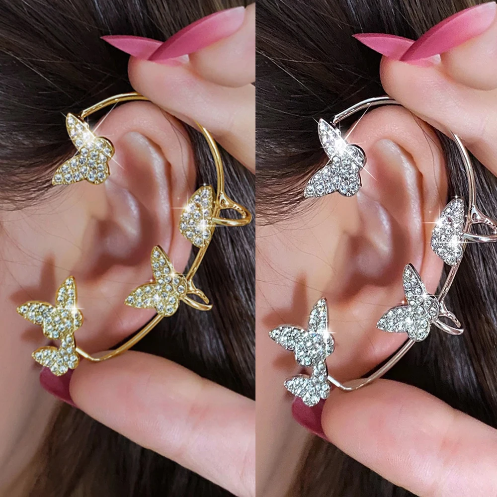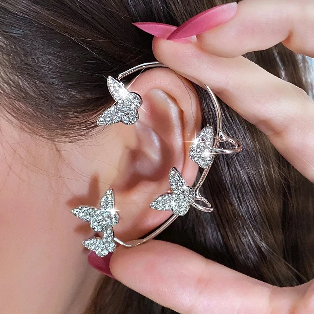 Модные клипсы-бабочки для ушей без пирсинга для женщин, сверкающие циркониевые клипсы для ушей, серьги-каффы, украшения для свадебной вечеринки, подарки