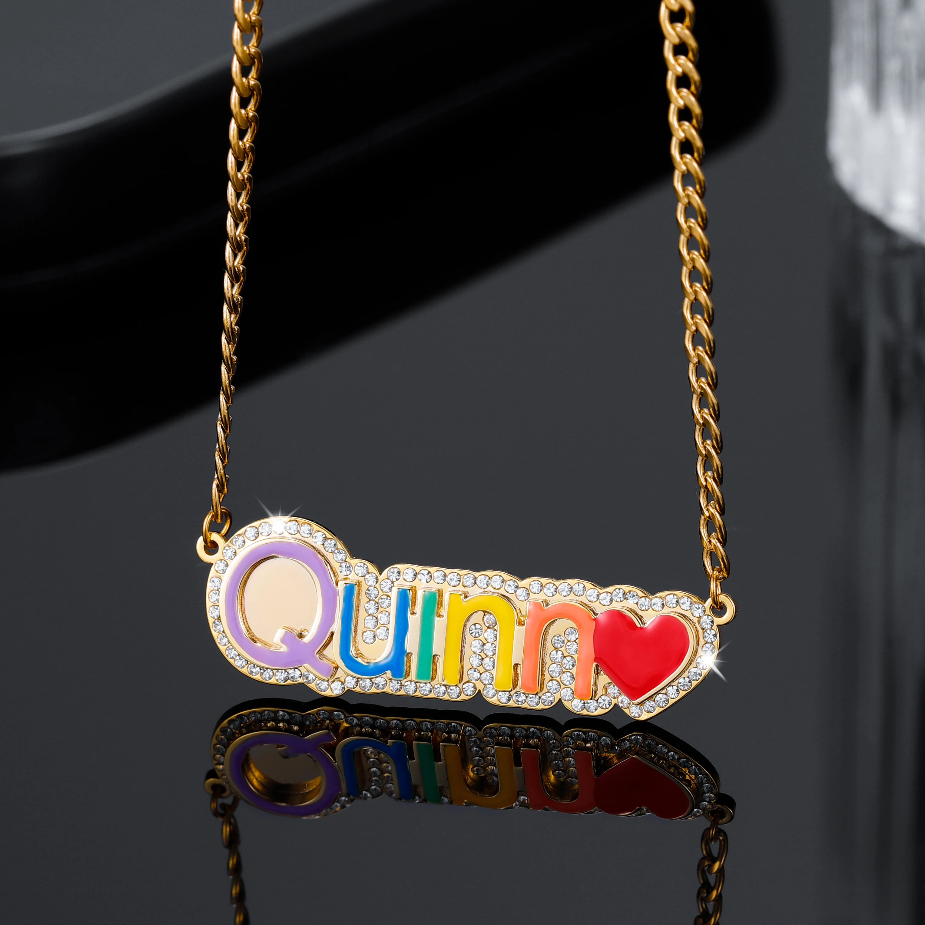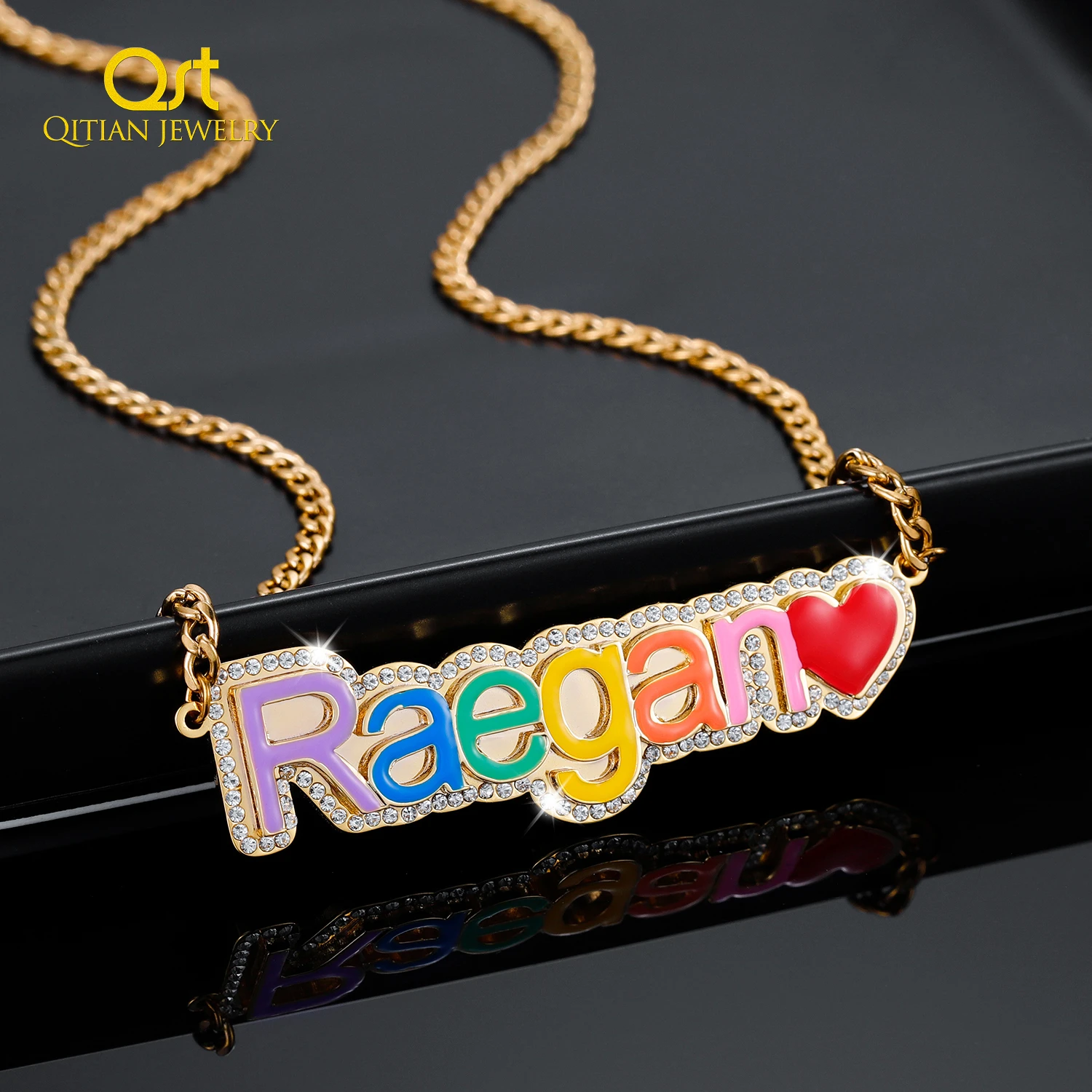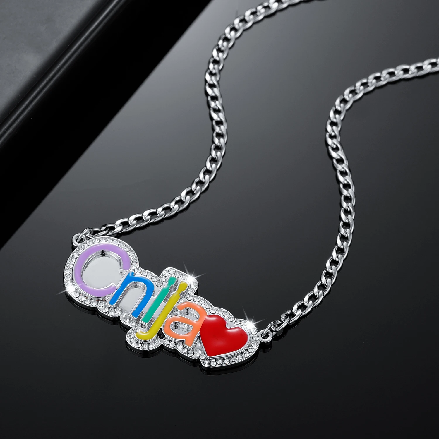 Женское Ожерелье с радужным именем, персонализированная цепочка со сверкающим именем Стразы, кулон на День святого Валентина