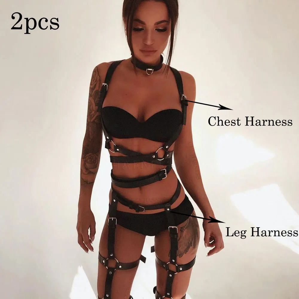 Leather Body Bondage HarnessThigh Harness Women Garter