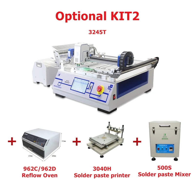 Настольная машина для пайки и размещения SMT с 2 головками, ZB3245T, духовка для заправки 962C, экран, Трафаретный принтер ZB3040H SMT, миксер для паяльной пасты ZB500S
