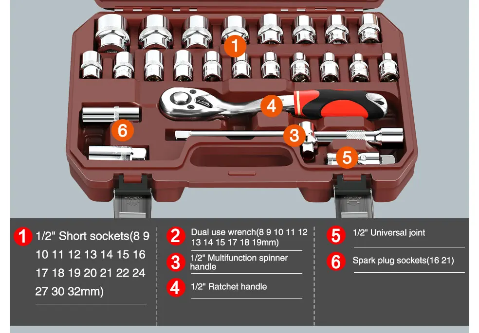 DTBD набор торцевых головок с покрытием 108 для ремонта автомобилей