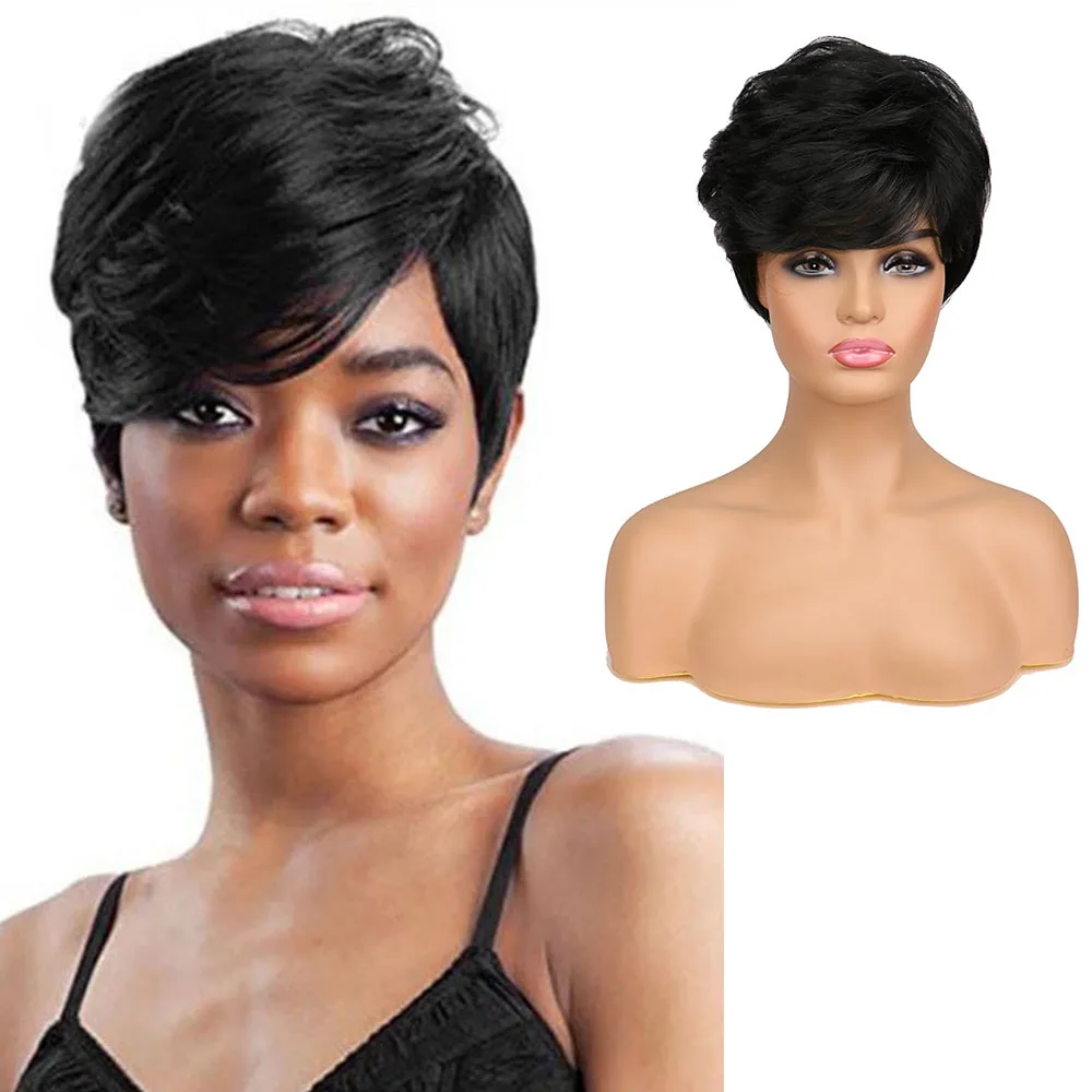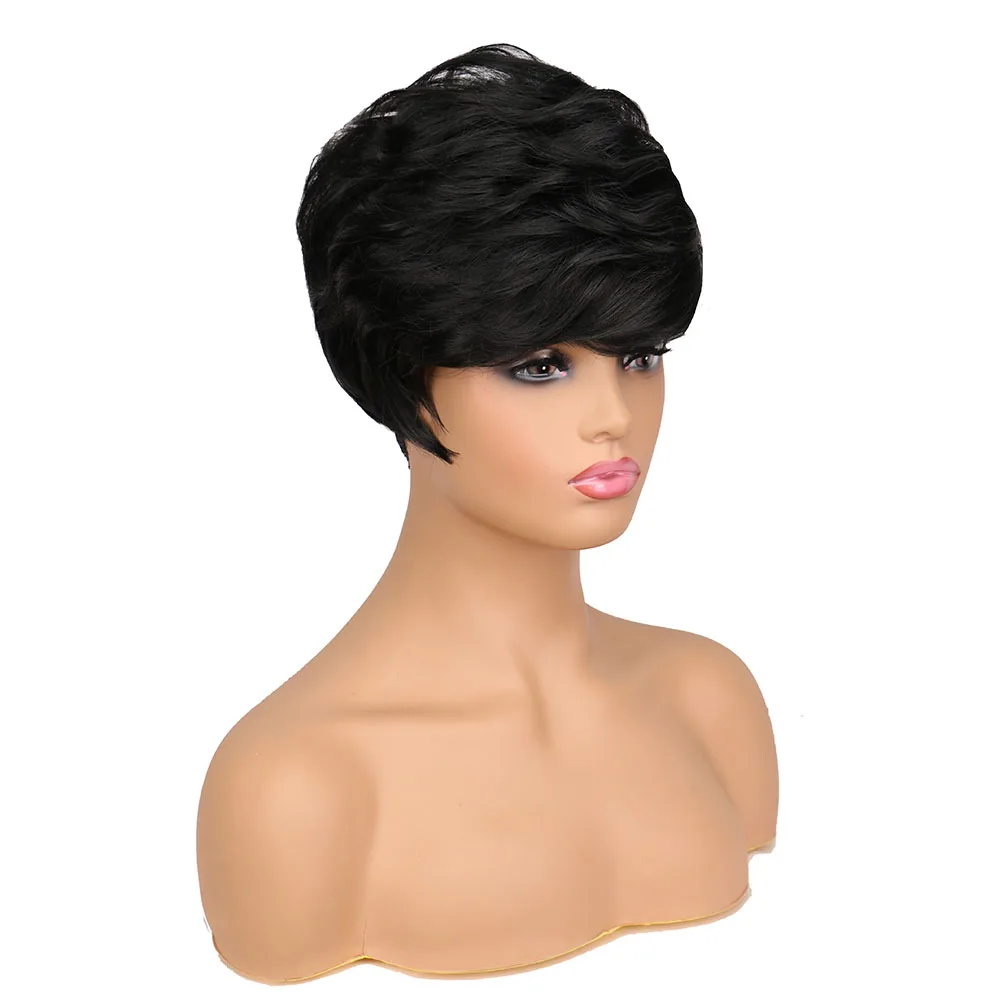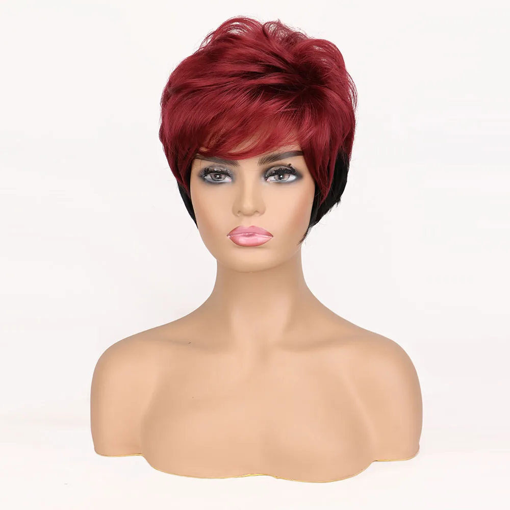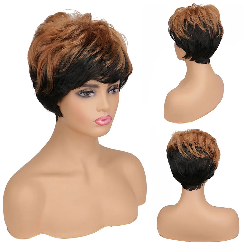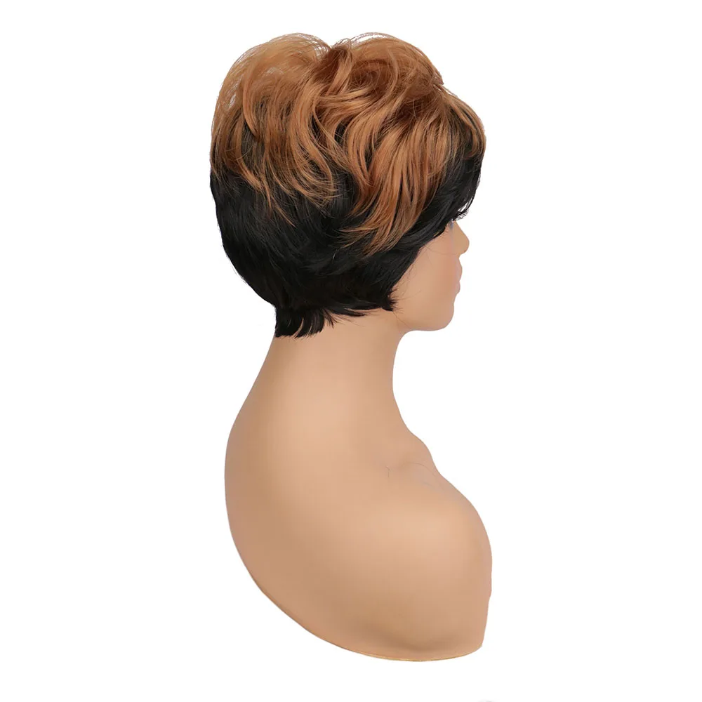 Причудливые Женские синтетические волосы W, короткие черные, коричневые парики смешанных цветов для черных женщин, женская стрижка, пышный прямой натуральный парик