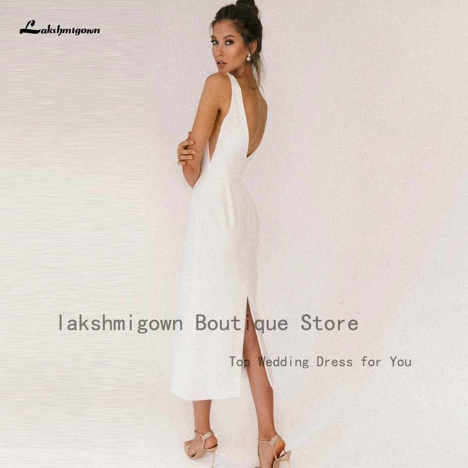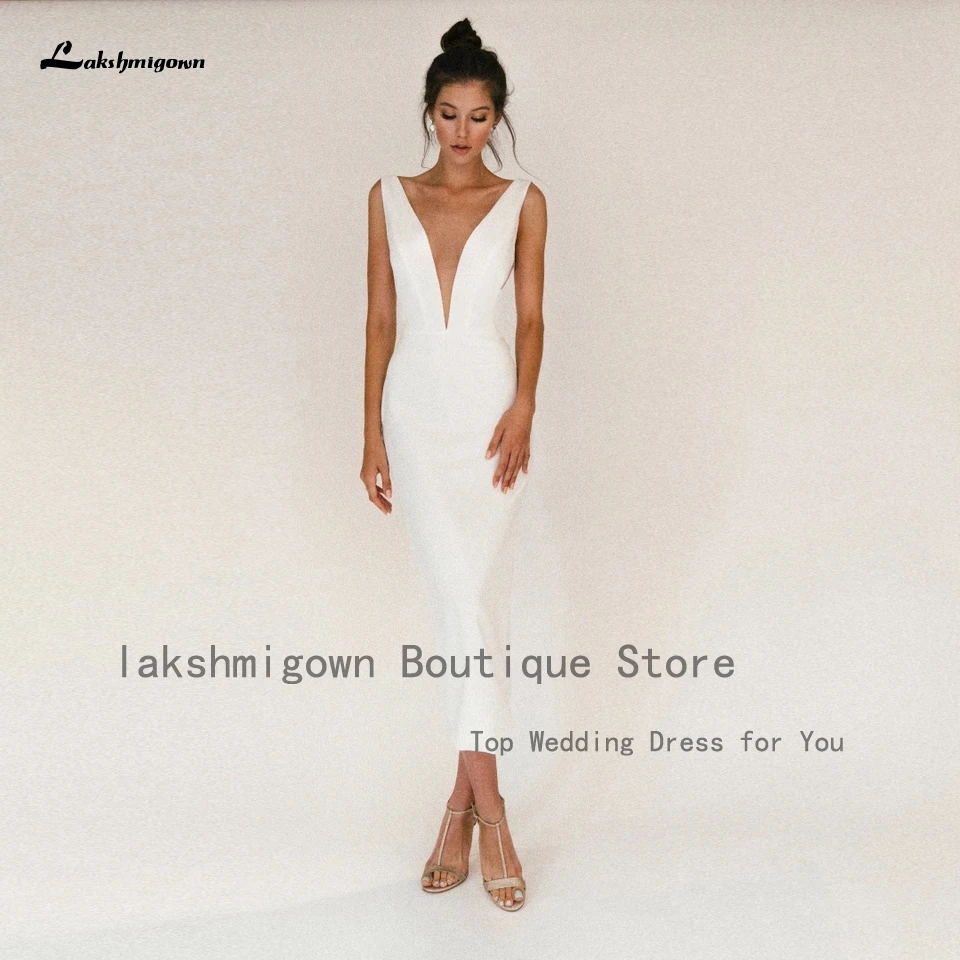Недорогое Платье-футляр с V-образным вырезом, Пляжное свадебное платье длиной ниже колена 2022, женское свадебное платье без рукавов