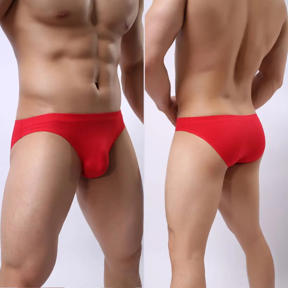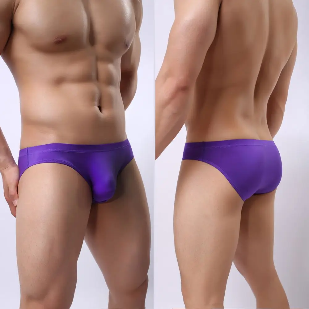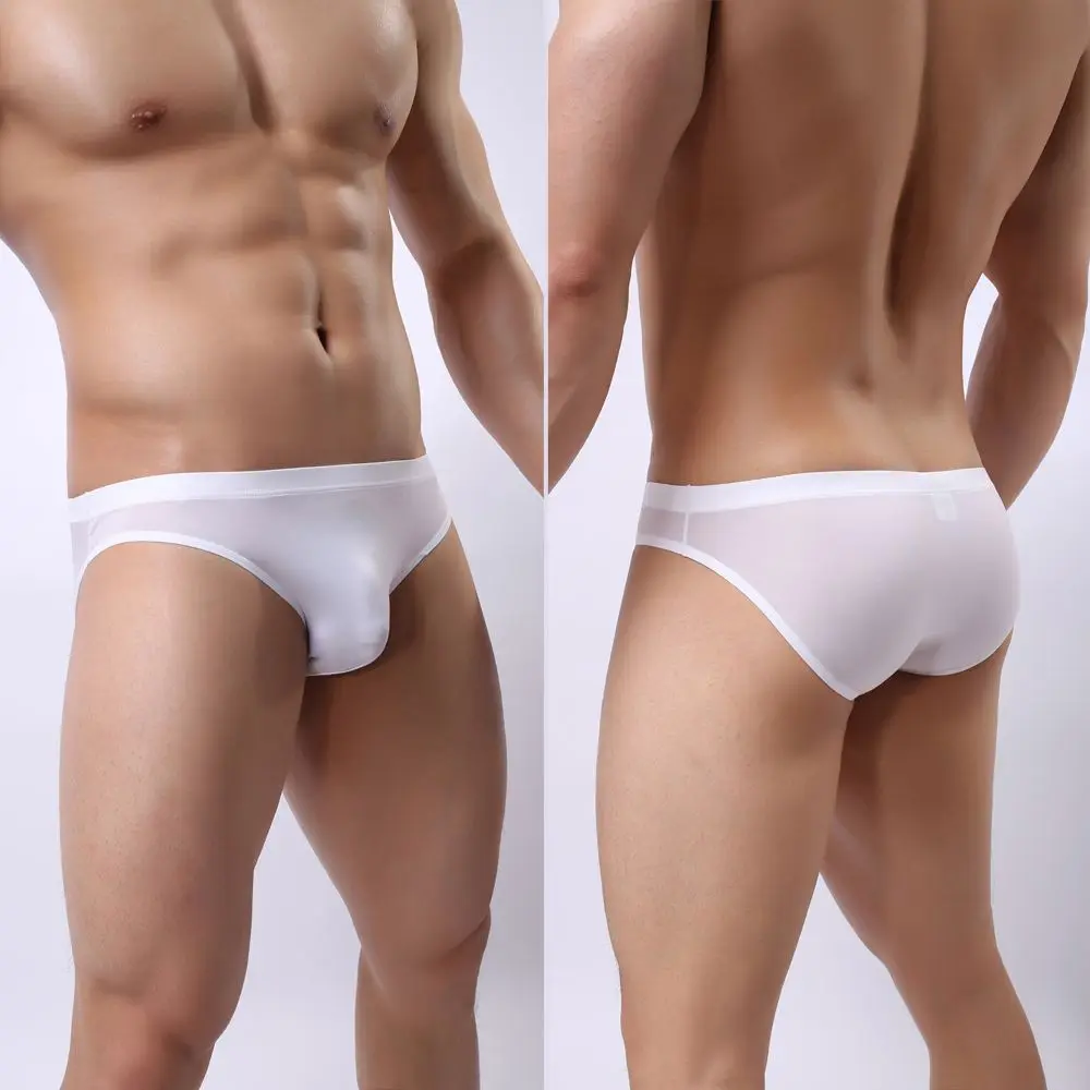 Сексуальные гладкие тонкие трусы, мужское нижнее белье, брифы из ледяного шелка, мини-бикини