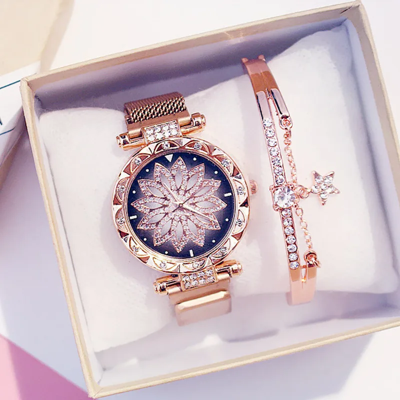 Женские кварцевые часы со звёздным небом, на магнитной застежке