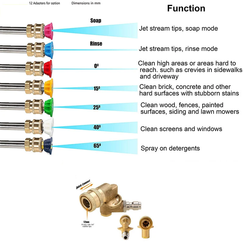 Шаблоны распыления: 0 °, 15 °, 25 °, 40 °, мыло, турбо (опционально).