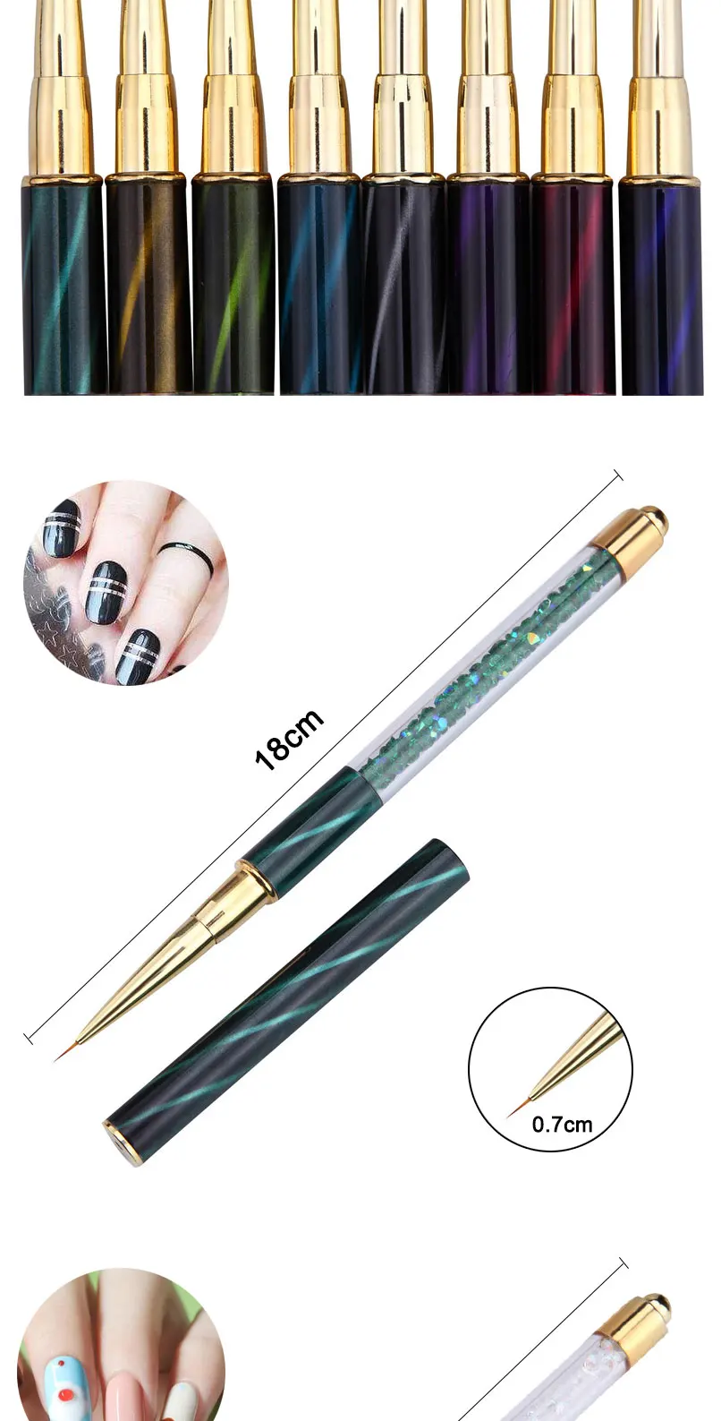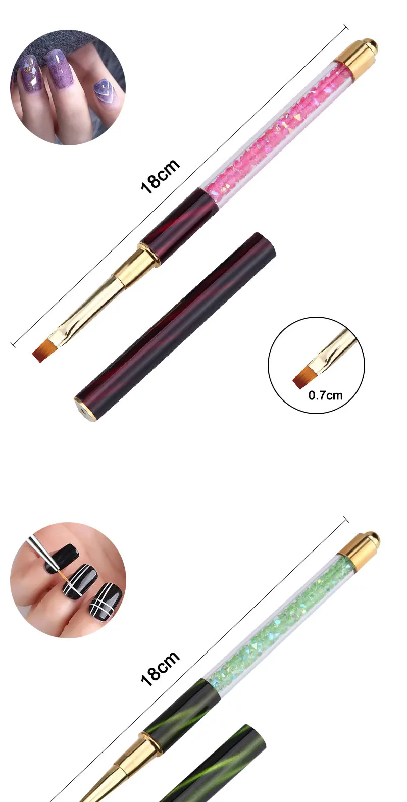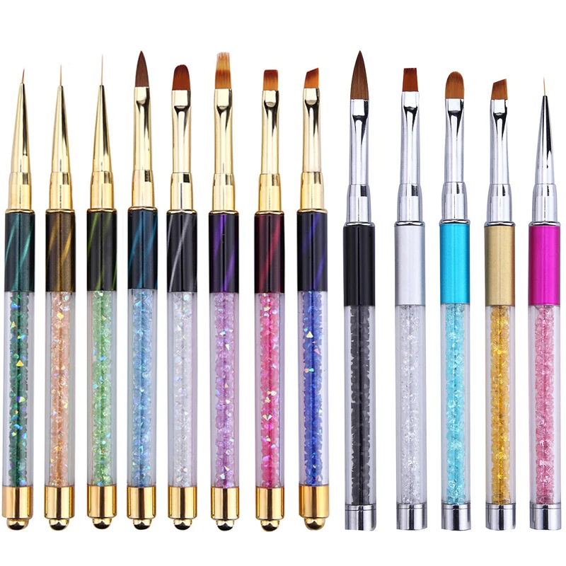 Акриловая кисть Стразы для дизайна ногтей, резьба, УФ-гель для наращивания, кисть для рисования, линии, искусственная ручка для ногтей, инструменты для маникюра