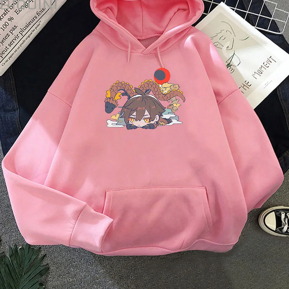Толстовка Genshin Impact ZhongLi с мультяшным принтом и розовым капюшоном аниме кавайная весенне-осенняя Толстовка Оверсайз модные пуловеры Harajuku