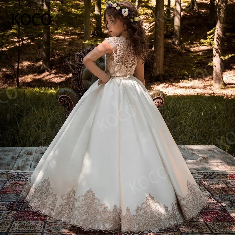 JONANY пользовательские розовые цветочные платья для девочек Кружевная аппликация атласная маленькая принцесса нарядное платье для первого причастия фотография
