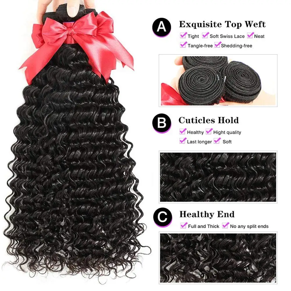 30-дюймопряди с глубокой волной Virgo с фронтальными бразильскими п...