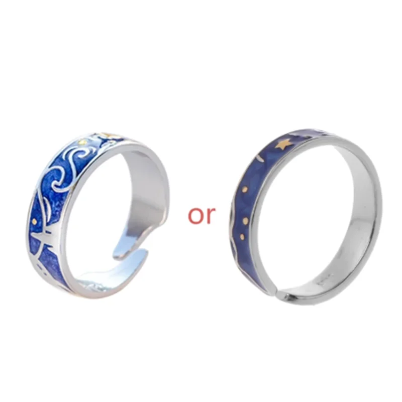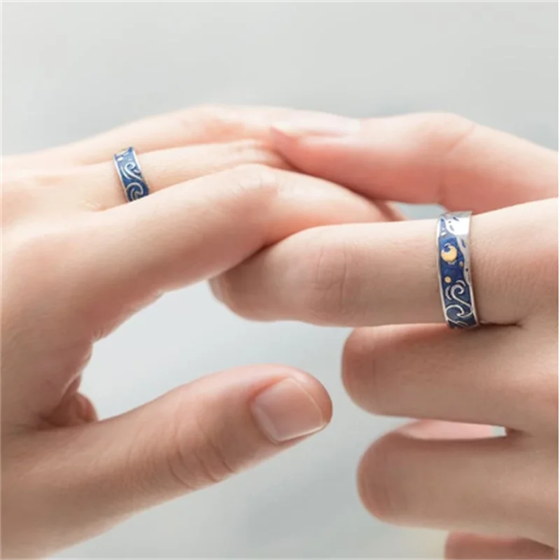 S925 посеребренные Ван Гог звездное небо Открытые Кольца для влюбле...