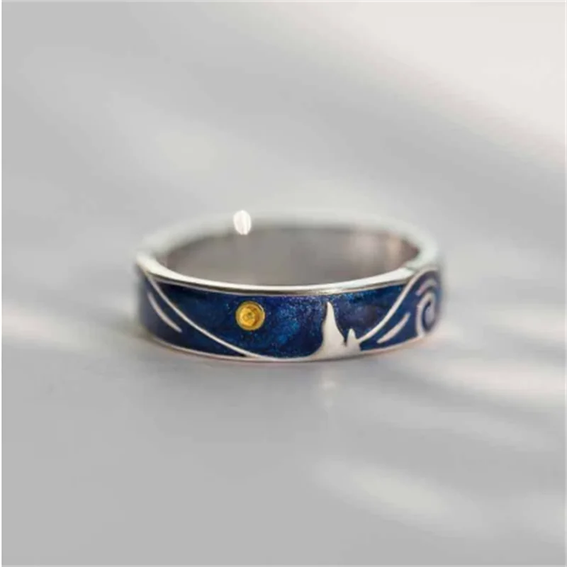 S925 позолоченные кольца Ван Гог звездное небо открытое любовное ко...