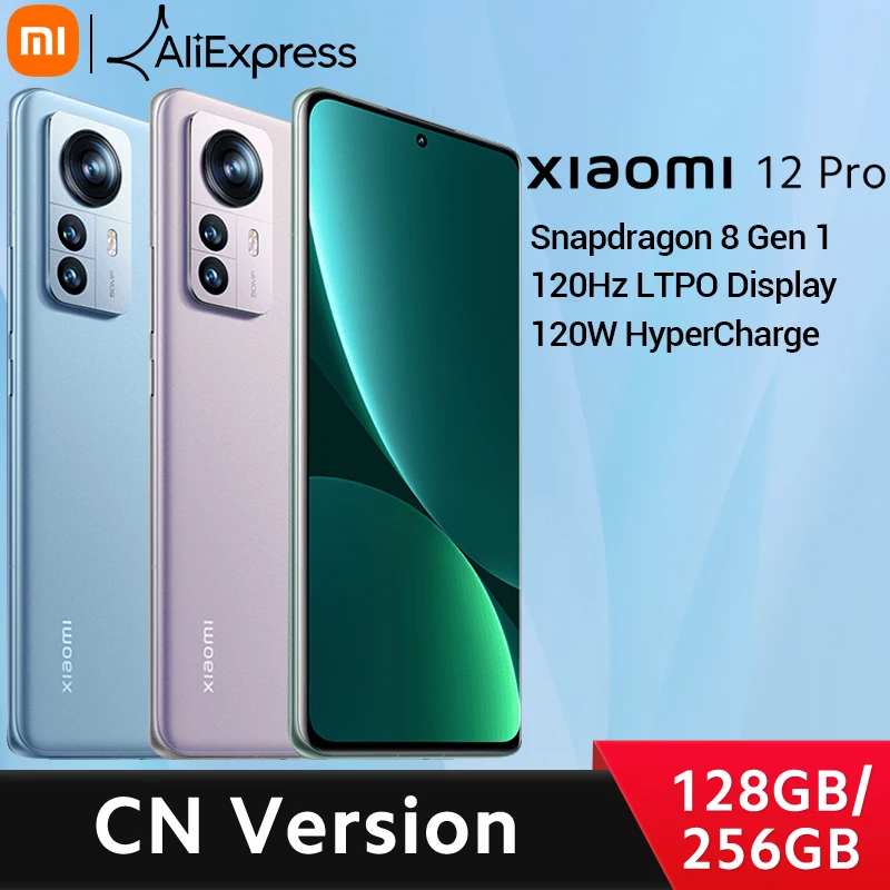 Смартфон Xiaomi Mi 12 Pro, Восьмиядерный процессор Snapdragon 8 Gen 1, 128 ГБ256 ГБ, экран 6,73 дюйма 120 Гц, 120 Вт, зарядка, тройная камера 50 МП