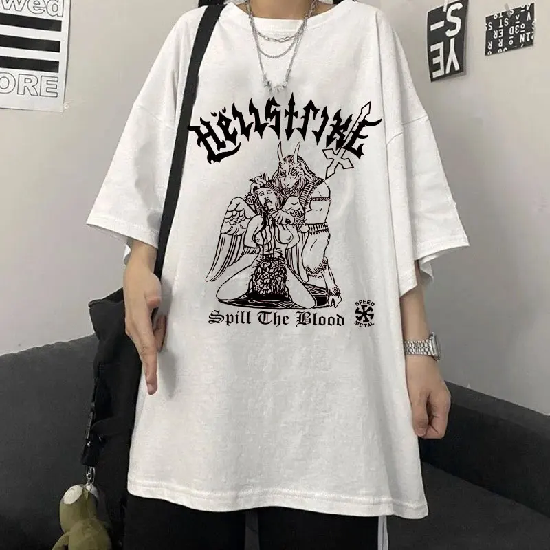 Женские футболки goth y2k, топы в стиле Харадзюку с принтом на Хэлл...