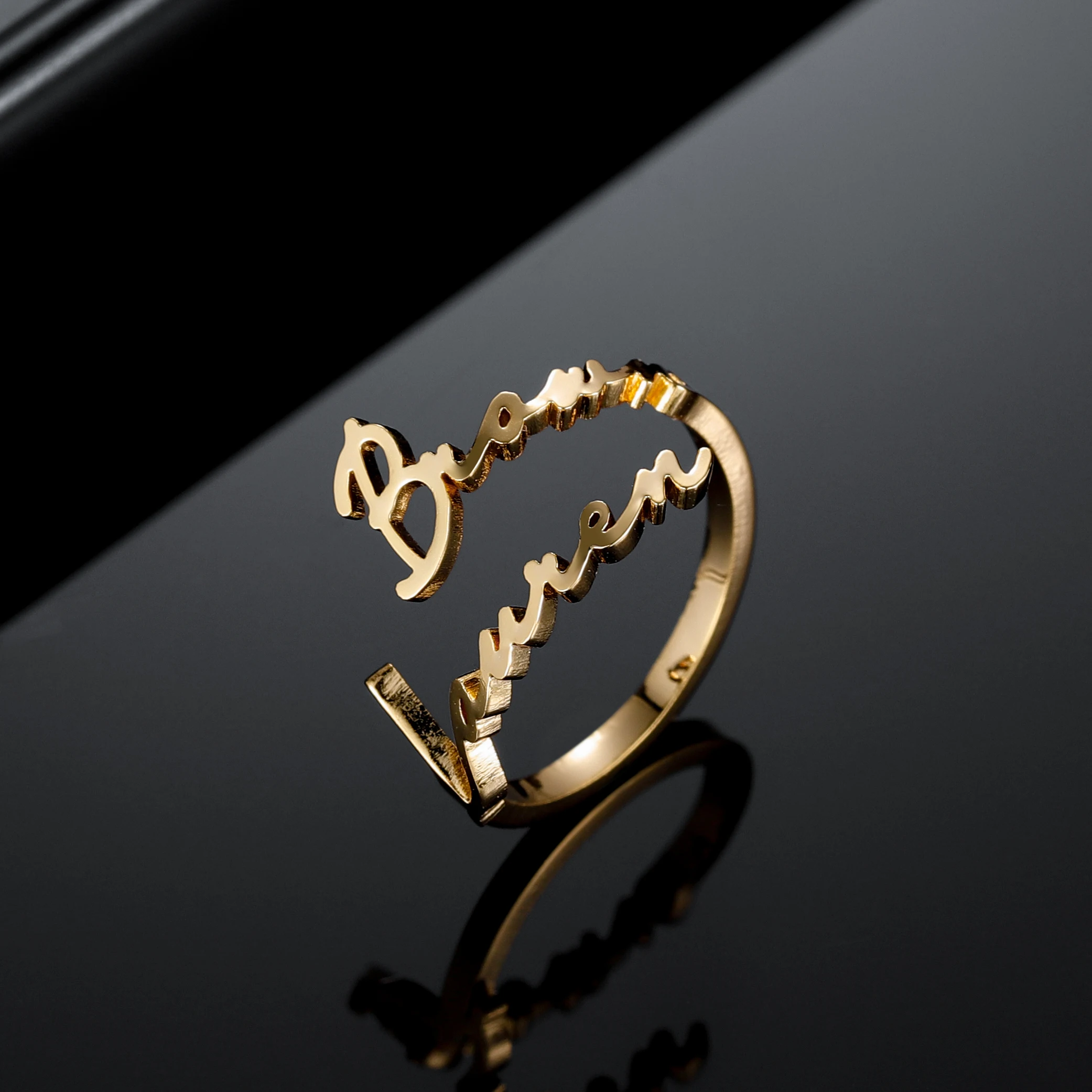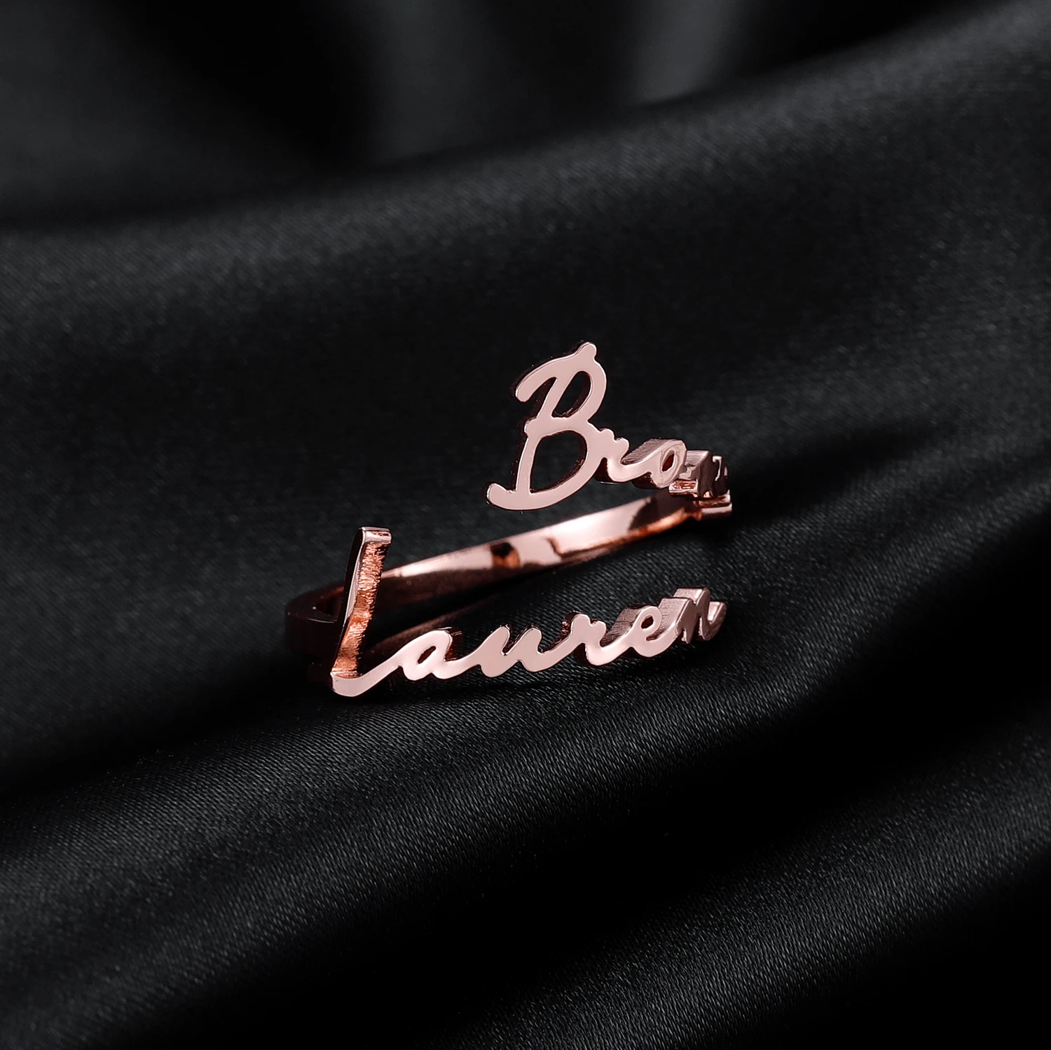 Женское двойное кольцо из нержавеющей стали с двумя именами