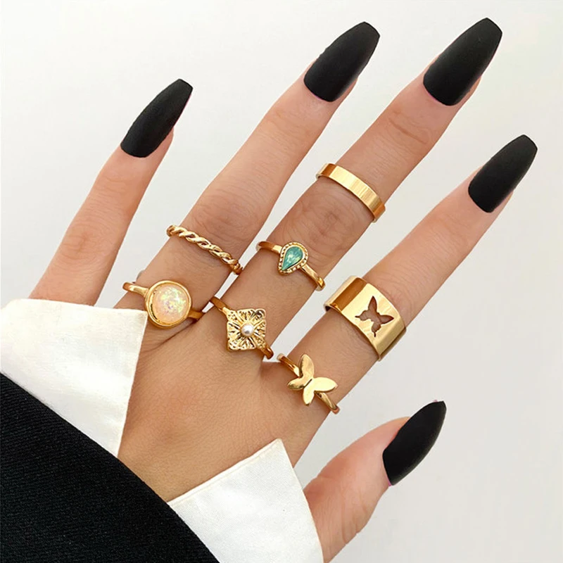 Модный набор металлических колец в богемном стиле с бабочкой, кольц...