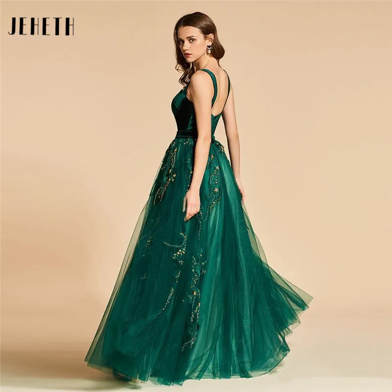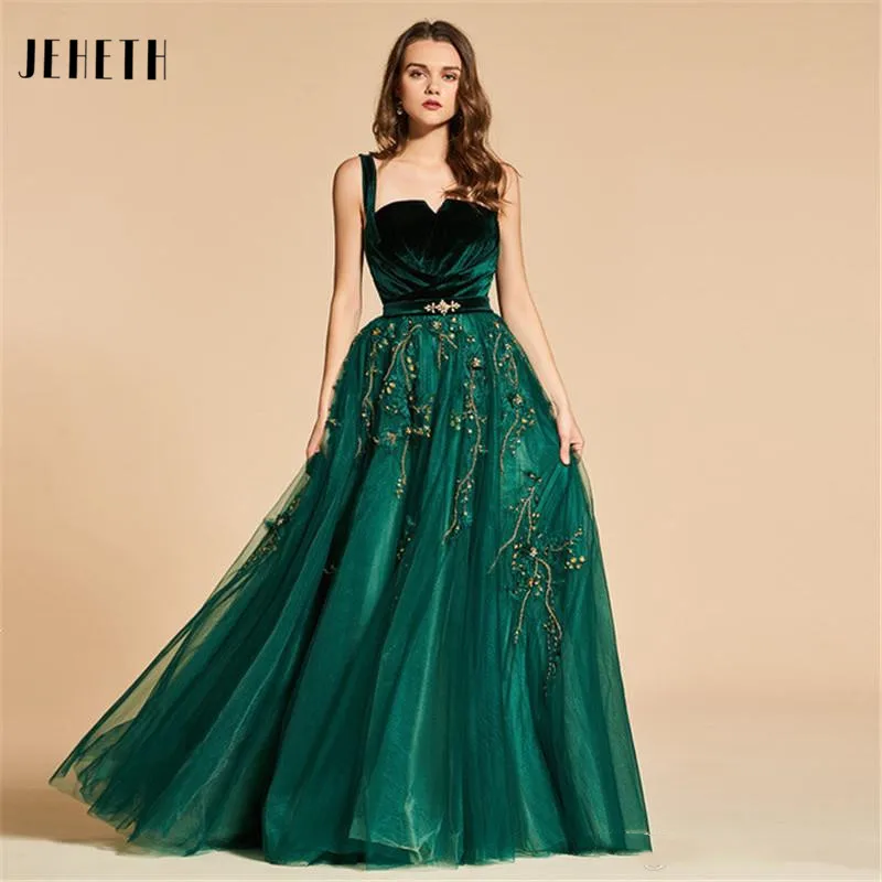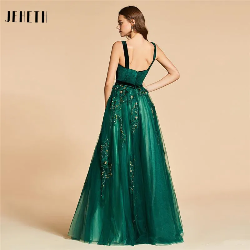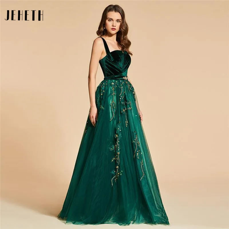 JEHETH вечерние платья до пола из тюля с бусинами бархатные на тонких бретельках для невесты Вечерние банкетные платья на молнии сзади Длинные Выпускные
