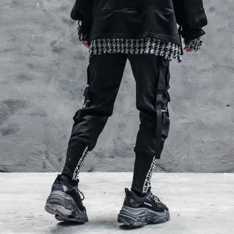 Брюки-карго мужские с лентой, уличная одежда в японском стиле Харадзюку, джоггеры, спортивные брюки-султанки, черные