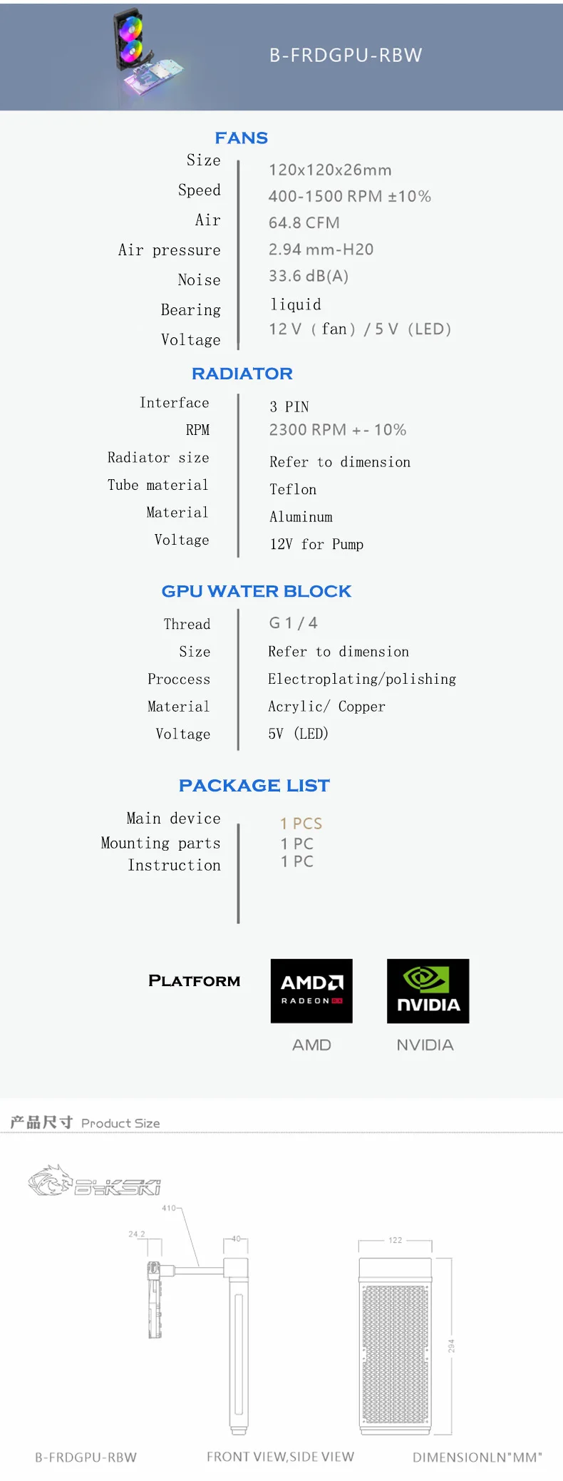 Bykski B-FRDGPU-RBW, графический процессор AIO процессорный кулер для AMD/NVIDIA 2060 2070 2080 Графическая карта, все в одном VGA комплект водяного охлаждения 5V ARGB и синхронизации