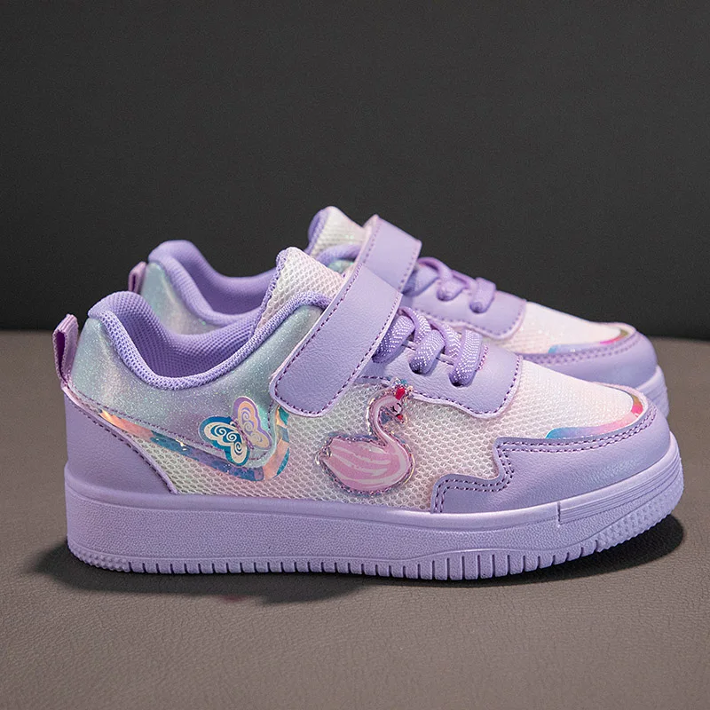 Кроссовки Детские сетчатые на липучке, повседневная обувь для девочек, милые сникерсы с изображением лебедя, бабочки, лазерного цвета, Модные кеды для детей 27-38