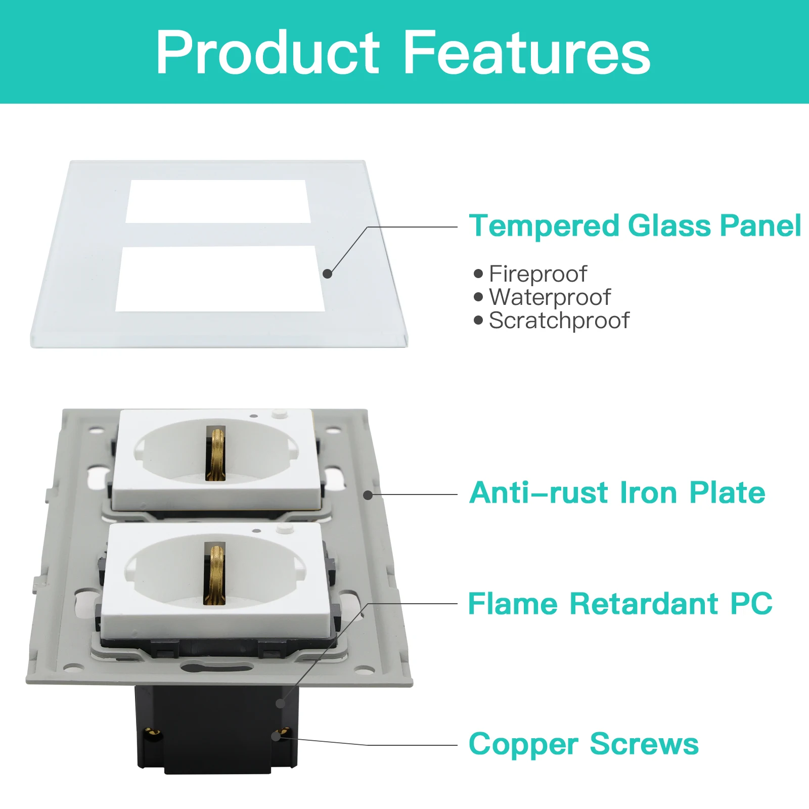 Розетка с двойной розеткой Zigbee, 157 мм, с рамкой из хрустального стекла