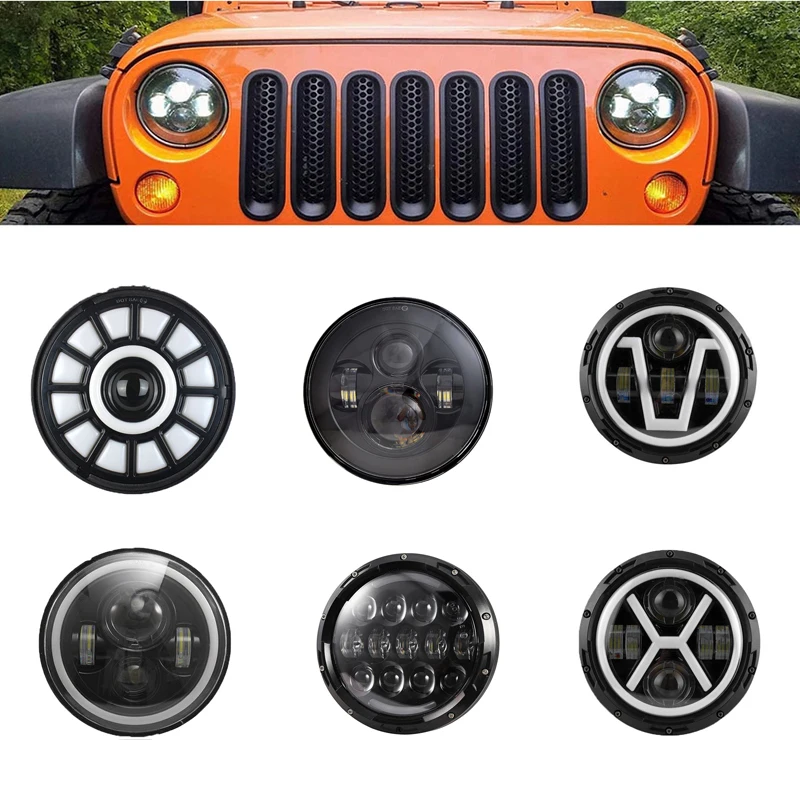 Автомобильные светодиодные ходовые огни, 1 шт., 75 Вт, 7-дюймовые светодиодные фары Angel Eyes H4 для Lada Niva 4X4 УАЗ Хантер Hummer suzuki samurai Jeep Wrangle