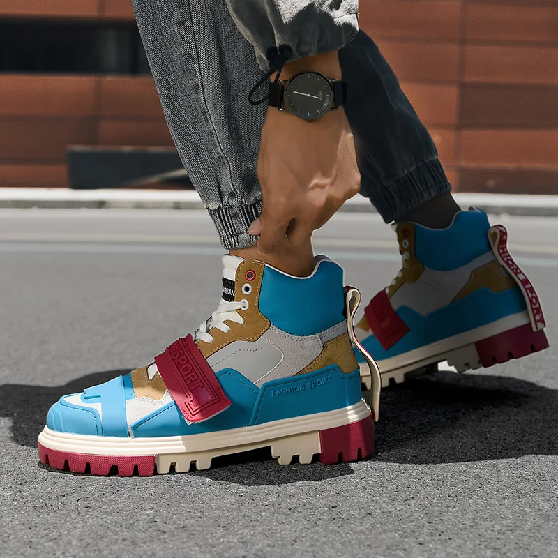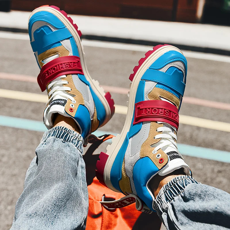 Мужские кожаные кроссовки, синие, красные, повседневные, на высокой...