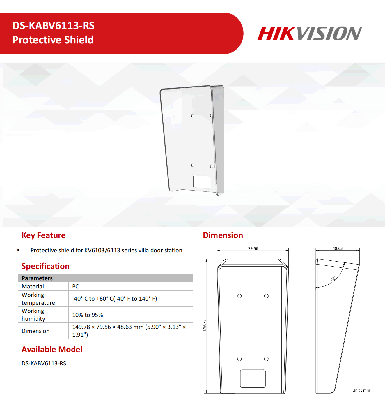 Номер моделиDS-KABV6113-RS