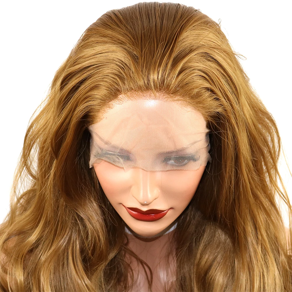 26 дюймов длинные безклеевые медовые Светлые Коричневые натуральные волнистые синтетические волосы на шнуровке спереди парики для женщин Термостойкое волокно плотность 180%