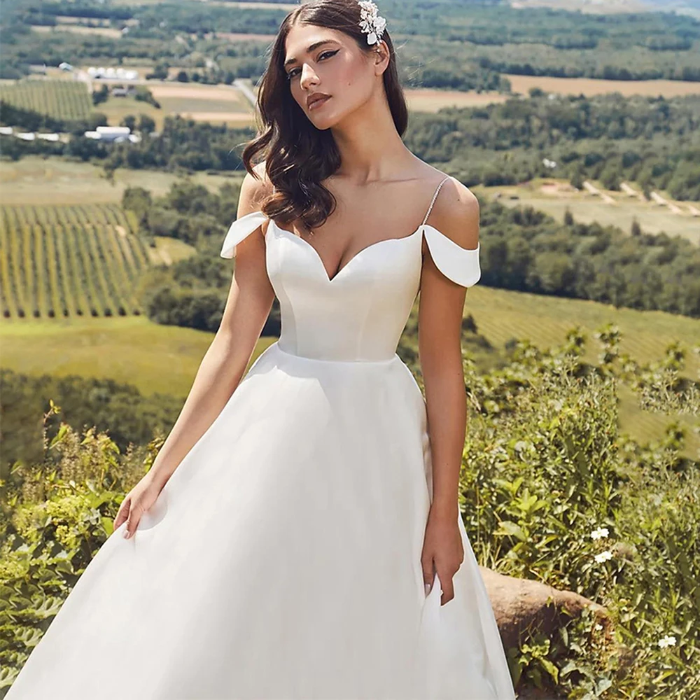 Атласное свадебное платье для невесты, на тонких бретельках, с открытой спиной, на пуговицах, белое, на заказ, простое качественное платье невесты, подружки невесты