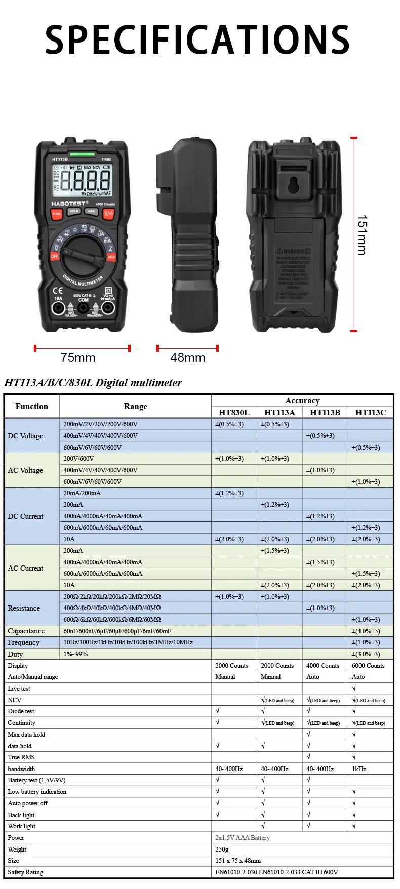 Auto RangeOnly HT113B/C