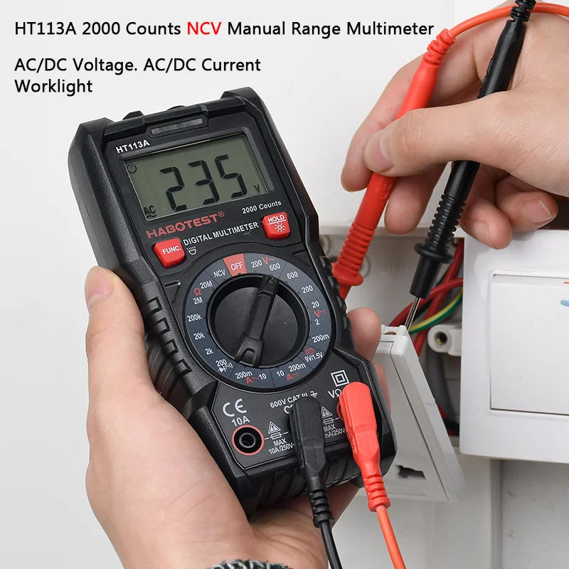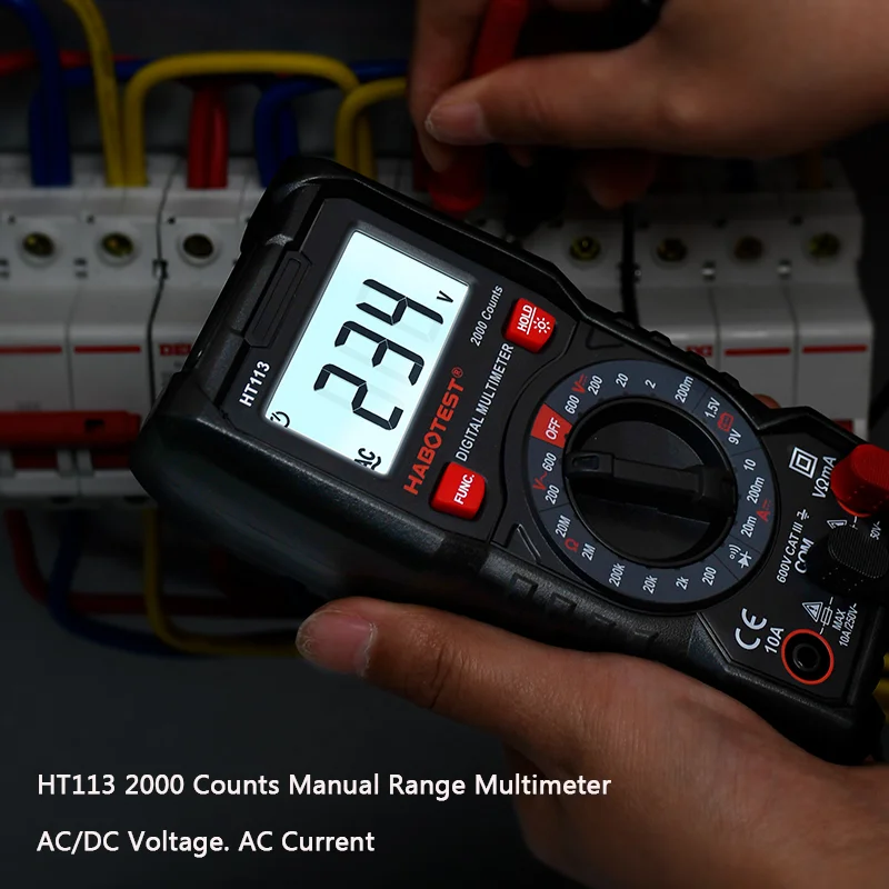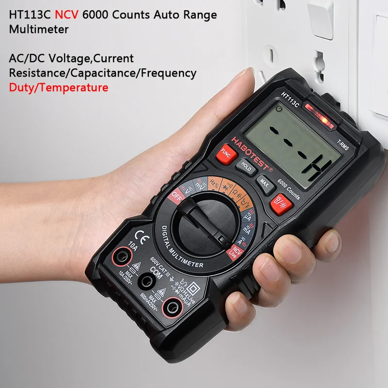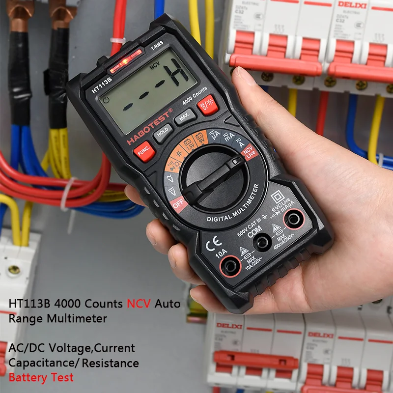 Портативный цифровой мультиметр Habotest серии HT113, автоматический ручной диапазон, вольтметр True RMS 600 в, амперметр постоянного и переменного тока, Гц, Бесконтактный Омметр, тестер