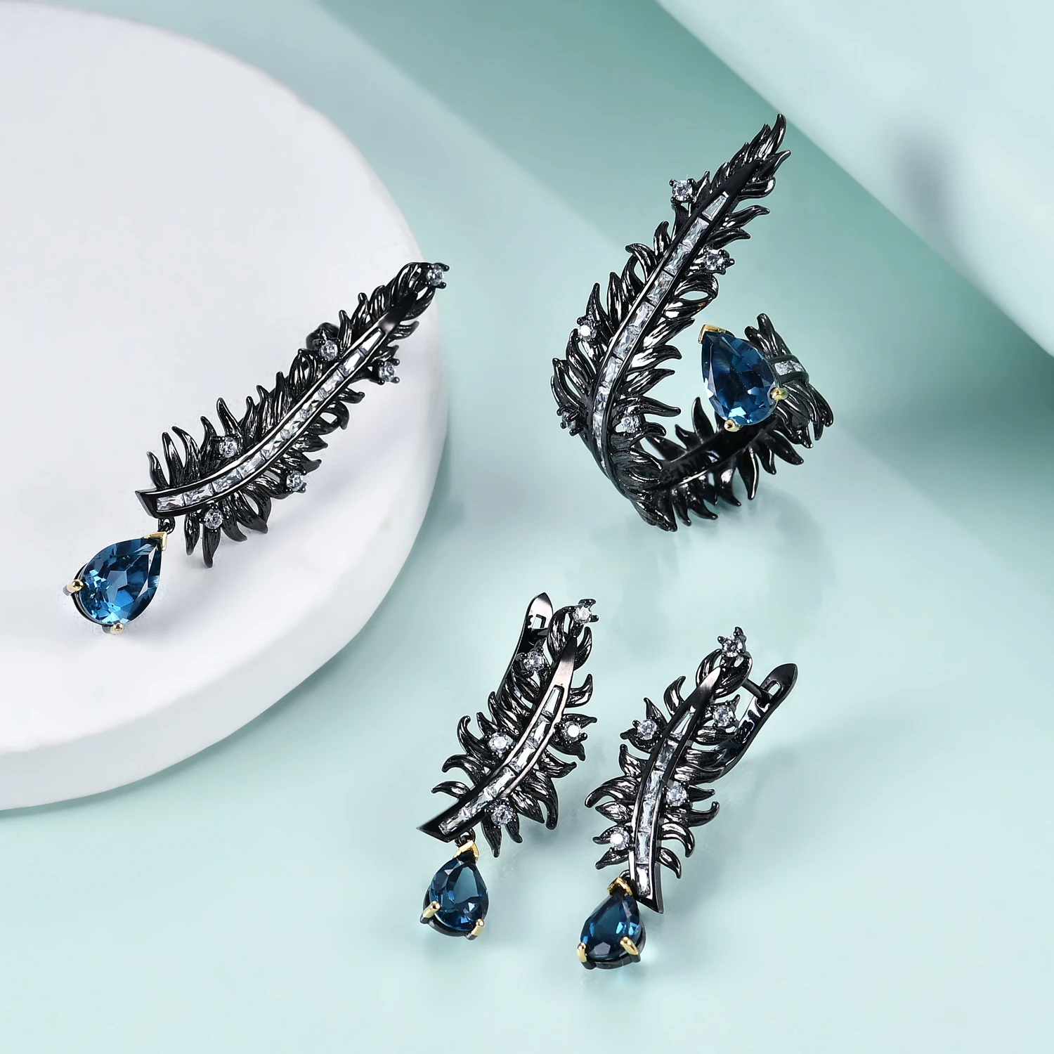 Красота драгоценных камней, кольца, искусственное винтажное перо, серебро 925 пробы, тонкая фотография Лондона, набор