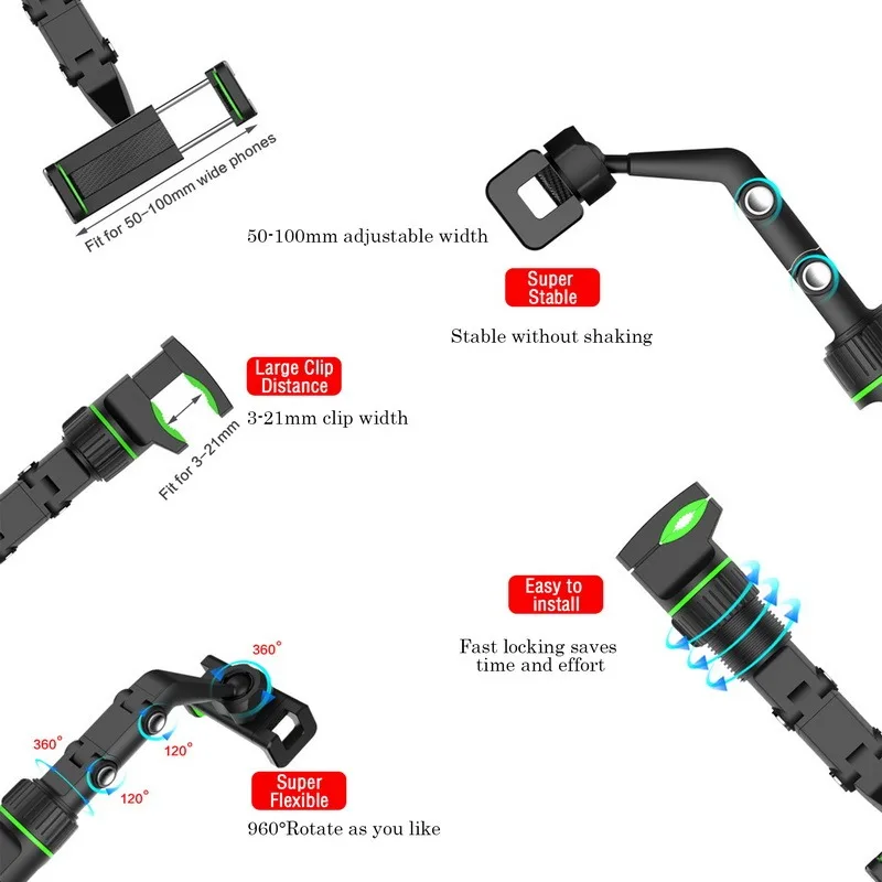 Особенности: Многофункциональный Ленивый Кронштейн, мобильный телефон, зажим для автомобиля, зеркало заднего вида, подушка заднего вида, стол, кухня, универсальнаяПримечание: При ручном измерении допускается погрешность в 1-3 смРазмеры: 14,6*5,5 смЦвет: голубой-синий, черныйМатериал: АБС-пластикПосылка включает в себя: зажим для телефона
