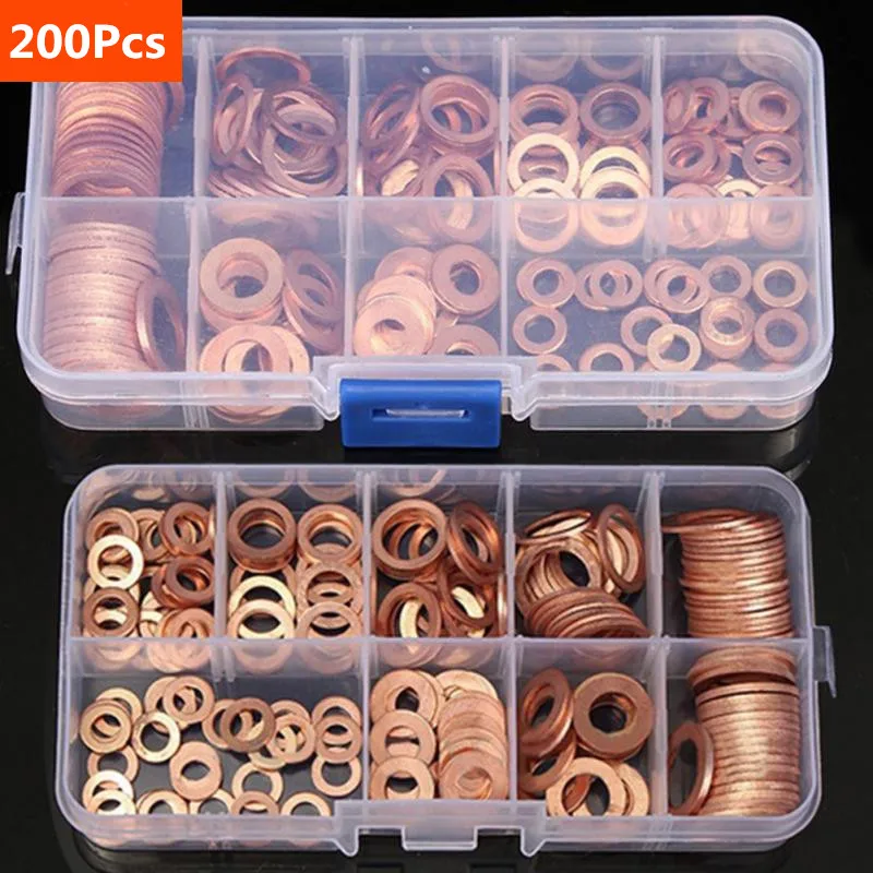 Набор медных шайб 200 шт., уплотнительные гайки и болты в ассортименте с коробкой M8M10M12M14 для пробки отстойника