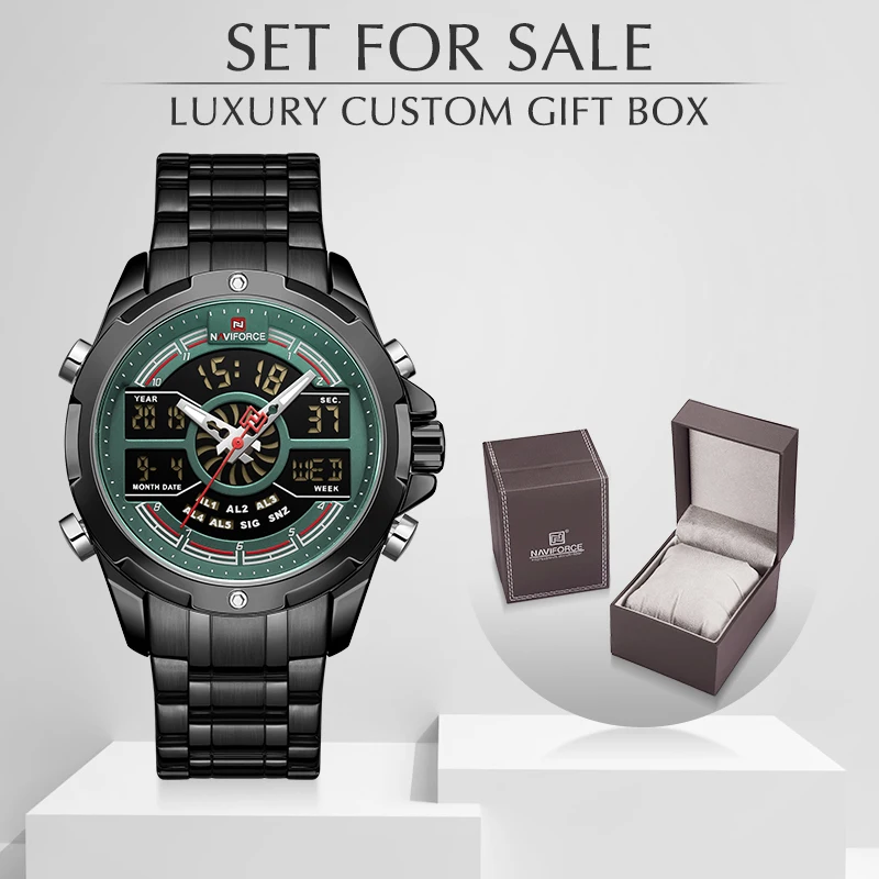 NAVIFORCE Роскошные мужские часы с коробкой водонепроницаемые кварцевые часы из нержавеющей стали набор для продажи мужские военные цифровые спортивные мужские часы