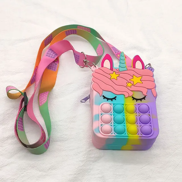 Игрушка-антистресс Pop It, радужная сумка через плечо с единорогом