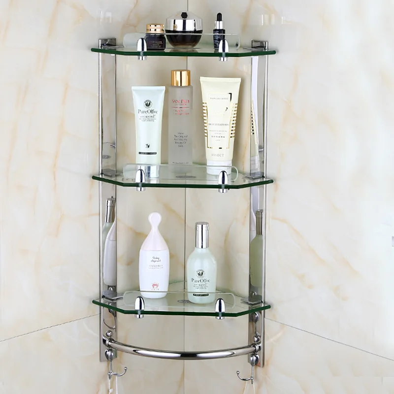 Полка в европейском стиле для ванной комнаты, стеклянная настенная полка, штатив из нержавеющей стали для ванной комнаты, угловая полка для ванной комнаты LO5191034