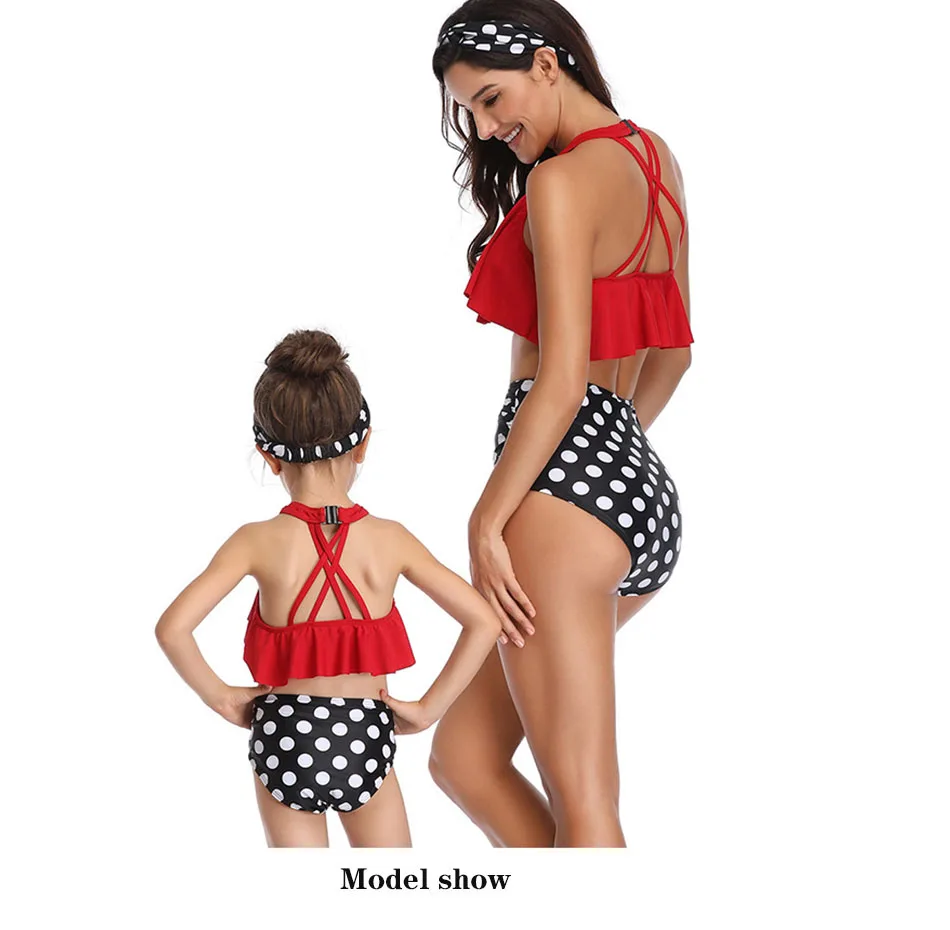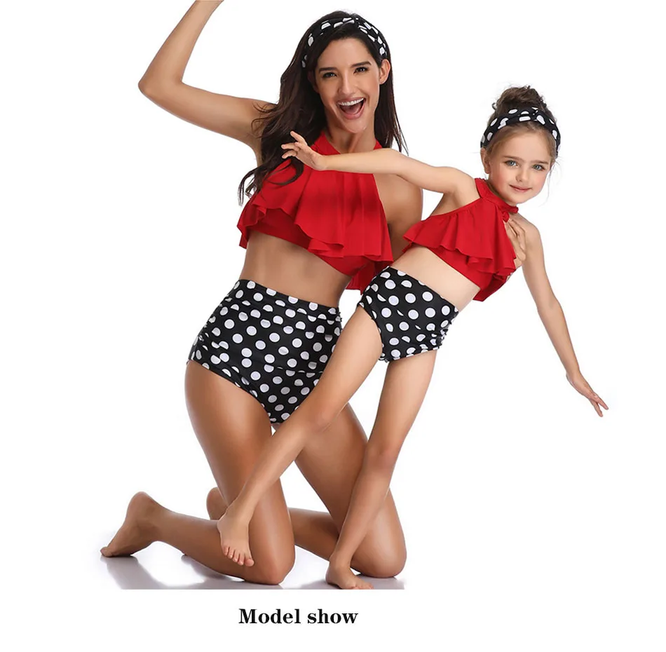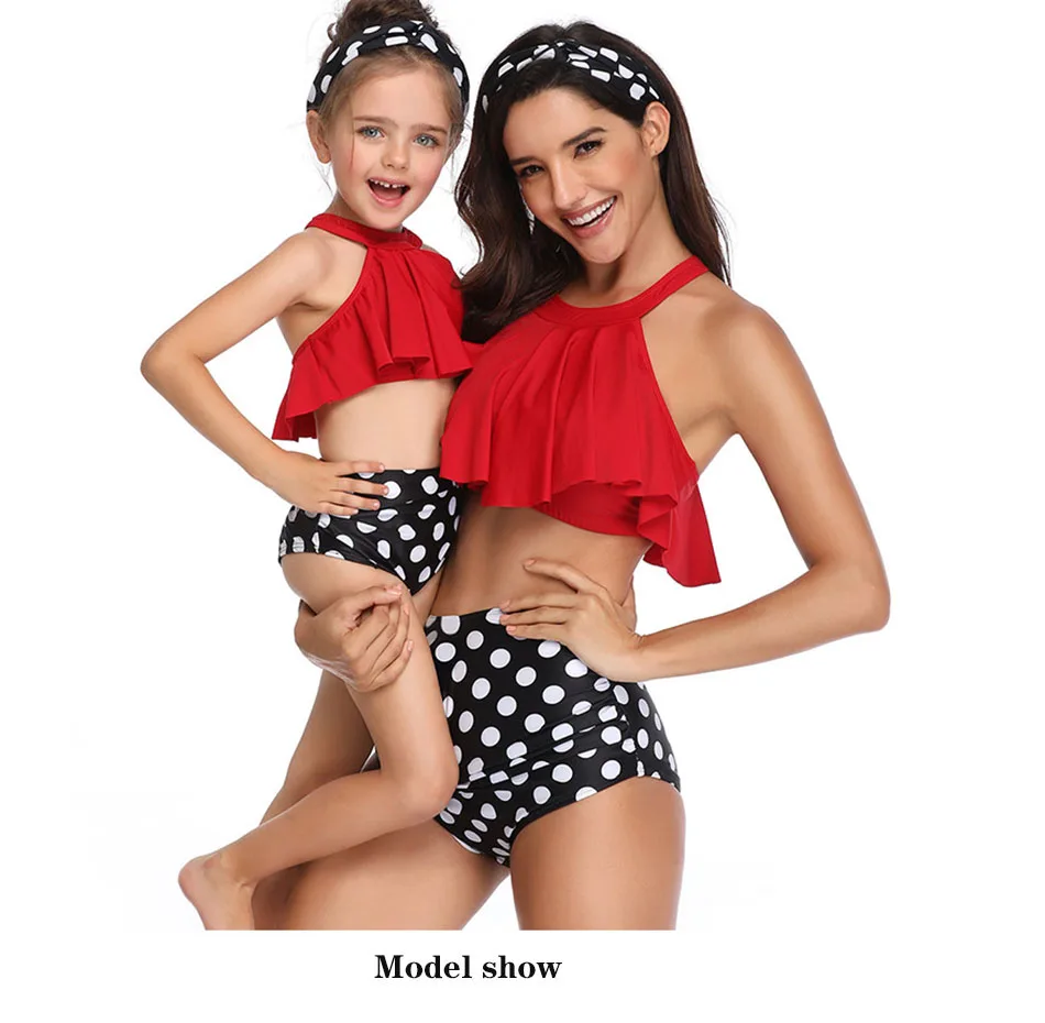 Семейные купальники, бикини с оборками для мамы и дочки, купальный ...