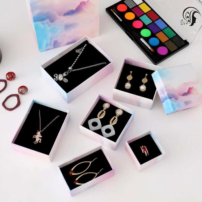 1 шт. освежающий мульти-размер бумажный набор ювелирных изделий чехол креативный розовый градиент облако подарочная упаковочная коробка ожерелье серьги кольцо держатель