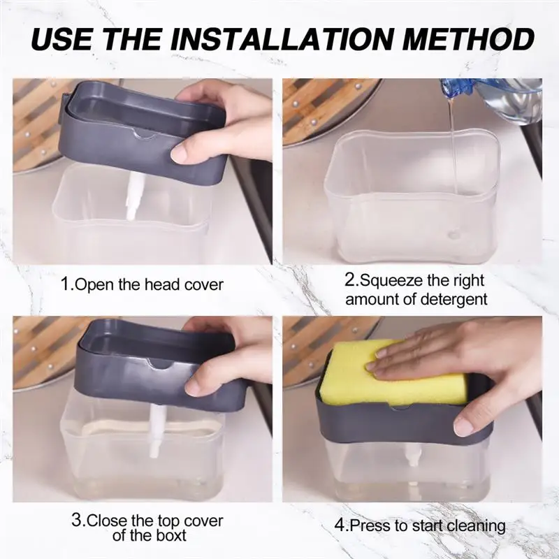 Кухонный Ручной Дозатор для мыла, насос с губкой, коробка для хране...