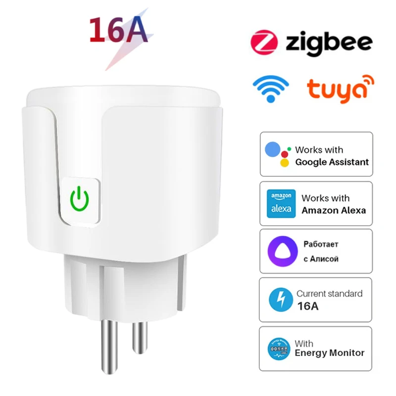 Смарт-розетка Tuya ZigBeeWi-Fi, 16 А, с монитором питания