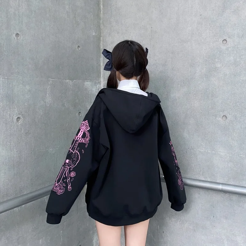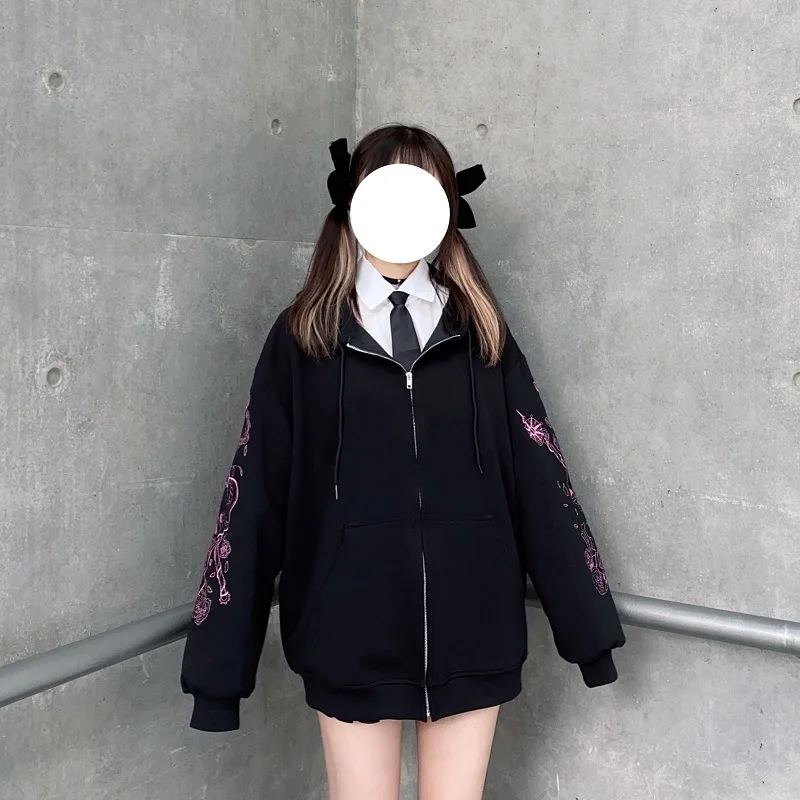Панк E-girl на молнии Толстовка Готический гранж графическая вышивк...